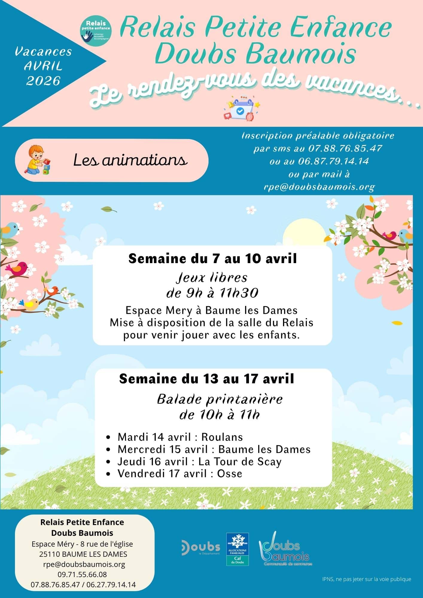Le planning est transmis tous les mois. Il est impératif de s’inscrire avant 12h la veille des animations auprès des animatrices du relais.